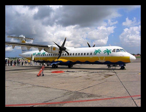 Lot przebiegał spokojnie tylko od czasu do czasu rzucało. W końcu lądujemy w Santiago de Cuba. Lotnisko powitało nas deszczem.
