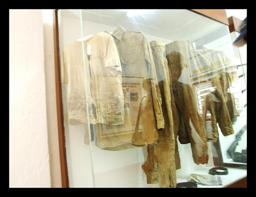 Docieramy do Granjita Siboney. Jest to mała farma, z zachowanymi śladami kul, gdzie Castro wraz z innymi rebeliantami planował w 1953r. atak na koszary Moncada w Santiago. Dzis w dawnym domostwie jest muzeum rewolucyjne z najcenniejszym eksponatem – rachunkiem z restauracji w Santiago, gdzie jedzono kolacje przed atakiem. Jest tez kolekcja odziezy poplamionej krwią. Zdjęć tam nie wolno robić... nie mi