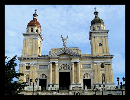 Docieramy do centrum Santiago de Cuba. Parque Cespedas tonie w zieleni. Zbierają się tu młodzi i starzy, biedni i bogaci. Ten plac to serce miasta. Nad placem góruje Catedral de Santa Ifigenia.