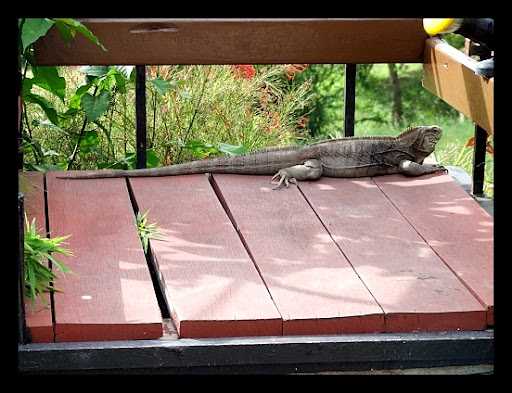 Dzień rozpoczynamy od interesującego spotkania. Na schodkach siedziała sobie iguana. Pozowała cierpliwie i nie ruszała się.