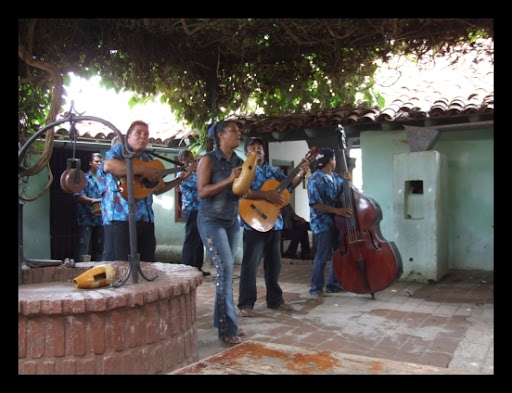 Na końcu trafiliśmy do knajpki, która przypominała typowy kubański dom. Muzycy zrobili dla nas małe przedstawienie. Po małym wstępie proszono ochotników na środek. Mieli okazję nauczyć się tańczyć salsę. Piosenki i tańce były przeplatane recytowaniem chyba krótkich wierszy....chyba bo nikt przecież nie znał hiszpańskiego