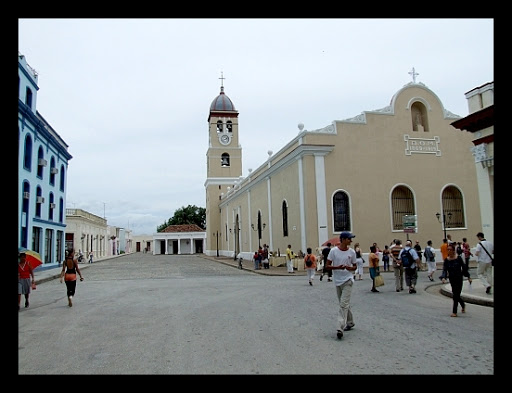 Iglesia San Salvador, gdzie Perucho Figueredo – prawnik i poeta – odegrał dla powstańców po raz pierwszy marsz, przyszły hymn narodowy Kuby. Ponad ławami widać wyobrażenie Virgen de la Caridad namalowane w 1919r. Całość tworzy wyjątkowe w Ameryce Łacińskiej malowidło religijne z politycznym podtekstem, sugerujące, że nowa republika otrzymała aprobatę kościoła. Niestety nie weszliśmy do środka więc nie wiem jak to wygląda. A tu kościól z zewnątrz: