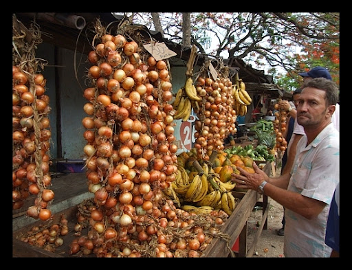 Dochodzimy do targu. Można tu kupić owoce, warzywa, przyprawy i mięso. Bardzo nam się tu podobało, tak bardzo, że na krótką chwile wcieliliśmy się w rolę sprzedawcy stając za wagą. Musicie uwiezyć na slowo