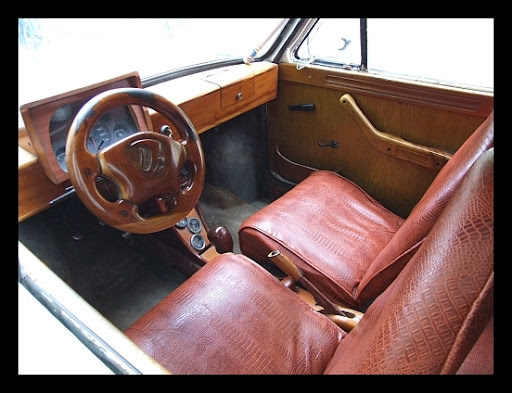 Na jednej z uliczek zauważamy stojącego malucha z otwartą szybą. Zerkamy na początku od niechcenia, a tu....co za widok....wszystko w drewnie