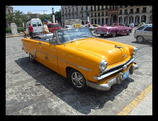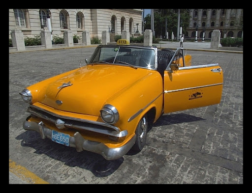Kolejną frajdę tego dnia zafundowaliśmy sobie sami – godzinna przejażdżka cudnym, żółtym cadillackiem. Poszliśmy pod kapitol, gdzie mają postój stare taksówki. Stały akurat dwa samochody. My wybraliśmy żółty w którym siedzieli obaj kierowcy. Zaczęliśmy się targować i gdy dobiliśmy targu ( 30 CUC ), kierowca tego drugiego brzydszego myślał, ze to z nim chcemy. Odmówiliśmy i wsiedliśmy do żółtej. Wiatr wiał we włosy a my jechaliśmy ulicami Hawany zwiedzając kilka już nam znanych miejsc,