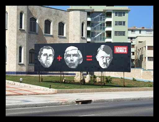 Przy tym bilbordzie kierowca zwolnił widząc nasz uśmiech. Już go widzieliśmy wcześniej gdy byliśmy w Hawanie z naszą grupą na objeździe tylko nie zdążyliśmy zrobić zdjęcia z szybko jadącego autokaru. Większość Niemców na jego widok oburzyło się. Ten w środku to Luis Posada Carriles. Wysadził on w powietrze kubański samolot z 73 osobami na pokładzie, urządzał zamachy bombowe na dyskoteki, nocne kluby, ośrodki turystyczne i ambasady, w których to zamachach zginęły setki osób, a także stał za próbami zabójstwa Fidela Castro i innych członków rządu kubańskiego. Został przez Stany Zjednoczone uniewinniony.