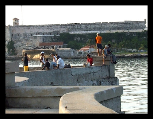 Malecón - najsłynniejsze wybrzeże w Hawanie. Wije się jakieś 4 km. Wcześniej wyczytaliśmy w przewodnikach, że zawsze tu pełno ludzi, że Melecón to bawialnia Hawany. My nie widzieliśmy tłumów, a nawet można powiedzieć, że było tu pusto. Jedynie było tu sporo rybaków.