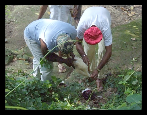 Robimy zdjęcia cudnym drzewom i nagle.... jesteśmy świadkami czarnej magii. Słyszymy śpiew podczas rytuału zarzynania kury. Zauważa nas Kubanka, ale nie rzuca na nas klątwy tylko uśmiecha się. Ufffff...