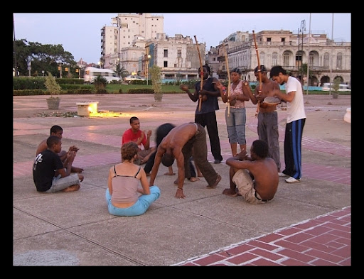 Wracając do hotelu przystanęliśmy na chwilę przy pomniku Maxima Gomeza by popatrzeć jak tańczą kapuerę. Jest to taniec, który polega na pokazywaniu “walki w tańcu”.